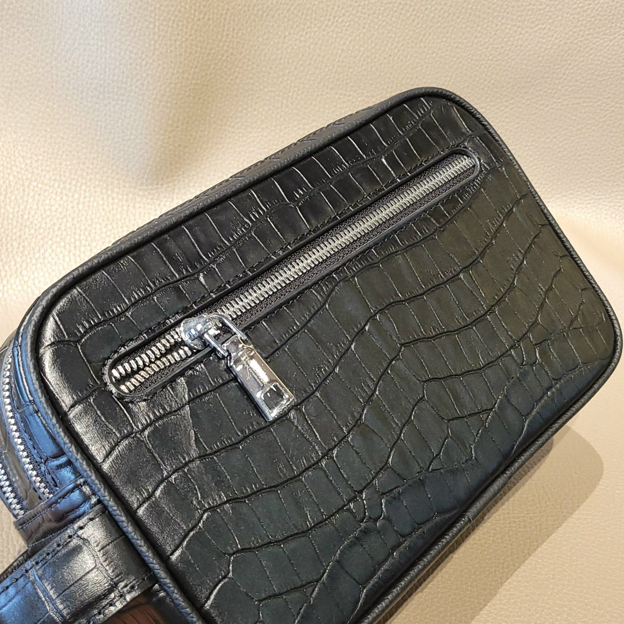 Embossed Black Crocodile Leather C2 Clutch